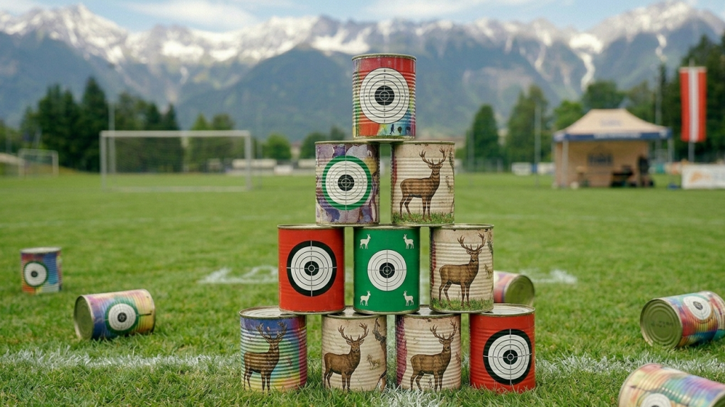 Gams-Schießen Beweist Treffsicherheit an der Zwille und holt die „Gams“ zielsicher vom Dosen-Thron.